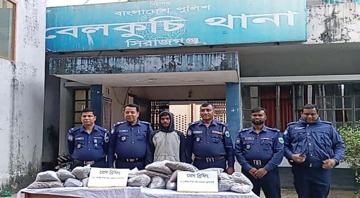 সিরাজগঞ্জের বেলকুচিতে ২০ কেজি গাঁজাসহ ১ যুবক আটক।