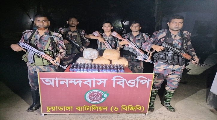 চুয়াডাঙ্গা-৬ বিজিবি সদস্যরা ২১ লাখ টাকার মাদক ও চোরাচালানপণ্য জব্দ করেছে