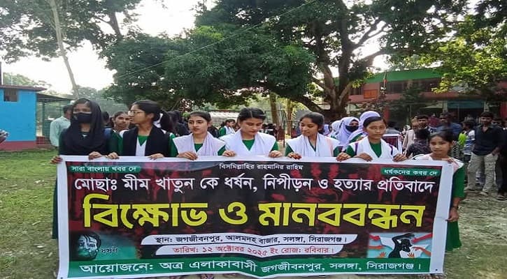 উল্লাপাড়ায় মিম খাতুন হত্যার প্রতিবাদে মানববন্ধন, দোষীদের ফাঁসির দাবি