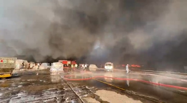 রাজধানীর হযরত শাহজালাল আন্তর্জাতিক বিমানবন্দরের কার্গো ভিলেজ কমপ্লেক্স ভবনের চারপাশে রোববার (১৯ অক্টোবর) সকালেও ধোঁয়া উড়তে দেখা যায়। সেখানে ফায়ার সার্ভিসের টিম দুই পাশ থেকে পানি