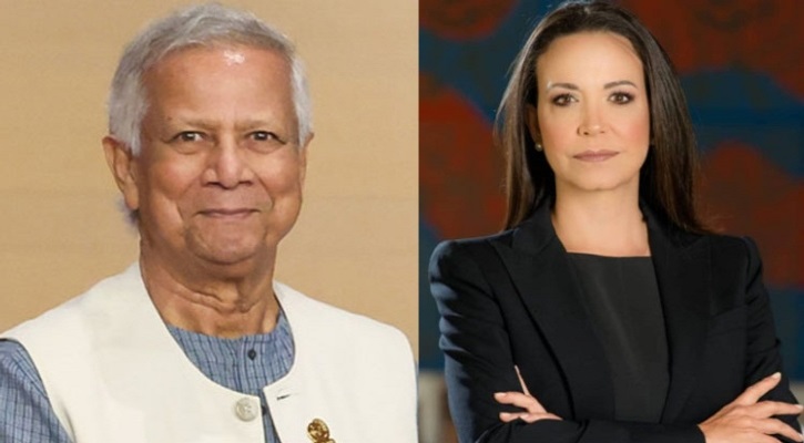 শুক্রবার (১০ অক্টোবর) এক অভিনন্দন বার্তায় অধ্যাপক ইউনূস বলেন, ‘আমি মারিয়া করিনা মাচাদোকে আমার অন্তরের অন্তস্তল থেকে অভিনন্দন জানাই।