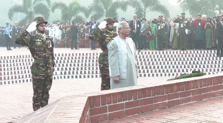 জাতীয় স্মৃতিসৌধে মহান বিজয় দিবসে বীর শহীদদের উদ্দেশে শ্রদ্ধা নিবেদন করেছেন প্রধান উপদেষ্টা ড. মুহাম্মদ ইউনূস।