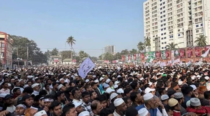 আজ শুক্রবার সকাল ৮টায় শুরু হওয়া জনসভায় উদ্বোধনী বক্তব্য রাখেন ফেনী জেলা জামায়াতের আমীর মুফতি আবদুল হান্নান। এদিন জেলার বিভিন্নথেকে মিছিলে মিছিলে জনসভায় যোগ দিচ্ছেন জামায়াতসহ ১১ দলীয় জোটের নেতাকর্মীরা। কানায় কানায় পূর্ণ ফেনী সরকারি পাইলট উচ্চ বিদ্যালয় মাঠ।