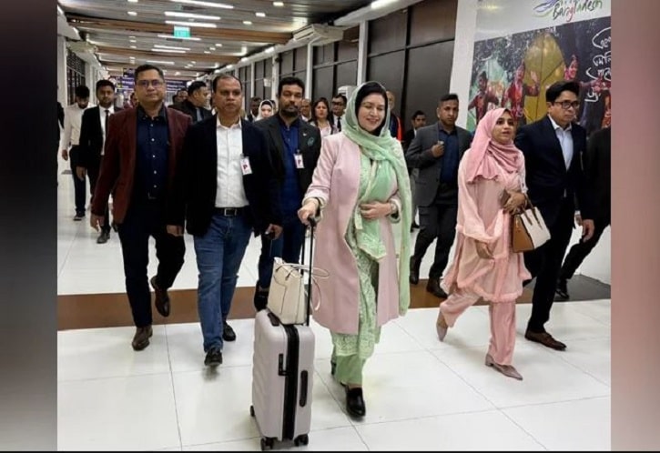 এর আগে সকাল ৭টা ১০ মিনিটে ধানমন্ডিতে বাবার বাসা থেকে বিমানবন্দরের উদ্দেশে রওনা হন ডা. জুবাইদা রহমান। পুরো যাত্রাপথে তার গাড়িবহরের জন্য বিশেষ নিরাপত্তা ব্যবস্থা নেওয়া হয়। এ সময় তার সঙ্গে পরিবারের সদস্যরাও ছিলেন।