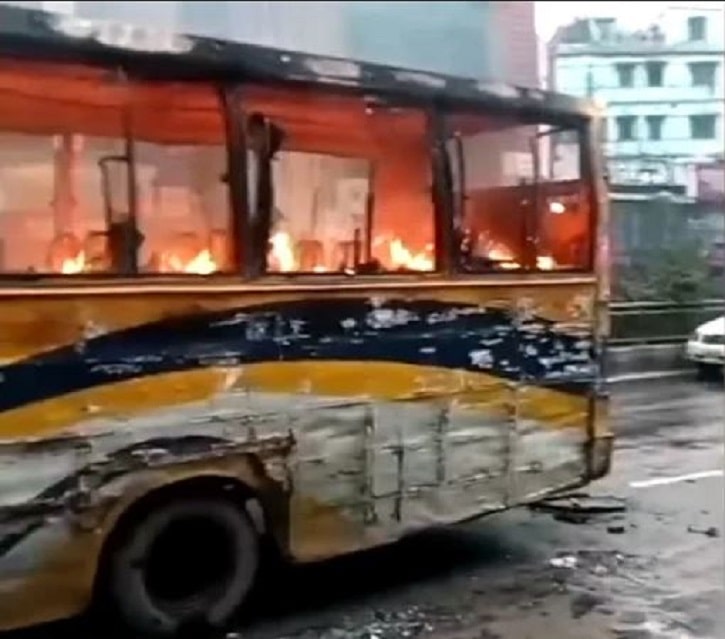 রাজধানীর মিরপুরের সেনপাড়া এলাকায় একটি যাত্রীবাহী বাসে আগুন দিয়েছে দুর্বৃত্তরা। আজ শুক্রবার সকাল ৭টা ২৩ মিনিটে আগুন লাগার খবর পেয়ে ঘটনাস্থলে গিয়ে সকাল ৭টা ৩৫ মিনিটের দিকে আগুন নিয়ন্ত্রণে আনে ফায়ার সার্ভিস।
