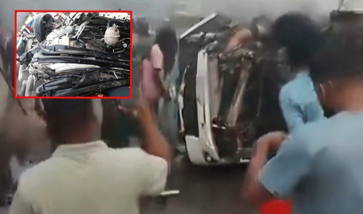 সকাল সাড়ে সাতটার দিকে ছোনকা এলাকায় পৌঁছালে দ্রুতগতির গাড়িটির গ্যাস সিলিন্ডার বিস্ফোরিত হয়। এতে চালক নিয়ন্ত্রণ হারালে মাইক্রোবাসটি রাস্তার মাঝখানের আইল্যান্ডে সজোরে ধাক্কা খায়। দুর্ঘটনায় ঘটনাস্থলেই এক ব্যক্তি মারা যান। পরে আহতদের উদ্ধার করে হাসপাতালে নেওয়ার পথে ও চিকিৎসাধীন অবস্থায় আরও দুজনের মৃত্যু হয়।