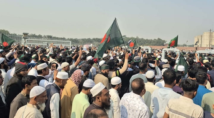 শনিবার (২০ ডিসেম্বর) দুপুর ২টায় জাতীয় সংসদের দক্ষিণ প্লাজায় শহীদ শরীফ ওসমান হাদির নামাজে জানাজা অনুষ্ঠিত হওয়ার কথা রয়েছে। জানাজায় অংশগ্রহণ করতে সকাল থেকেই মিছিল নিয়ে বিভিন্ন রাজনৈতিক দলের নেতাকর্মী এবং সাধারণ জনগণ সংসদ ভবন প্রাঙ্গণে জড়ো হচ্ছেন।