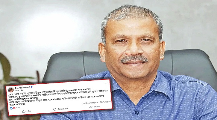 আসিফ নজরুল লিখেছেন, ‘এখন থেকে কওমি মাদ্রাসার স্বীকৃত ডিগ্রিধারীরা নিকাহ রেজিস্ট্রার (কাজি) হতে পারবেন। আগে এই সুযোগ আলিম সনদধারী ব্যক্তিদের জন্য সীমাবদ্ধ ছিলো। আইন মন্ত্রণালয় এই সুযোগ বাড়ানোর জন্য আইন সংশোধন করেছে।’