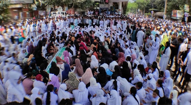 নতুন বাজারে ইউআইইউ শিক্ষার্থীদের সড়ক অবরোধ, বন্ধ যান চলাচল