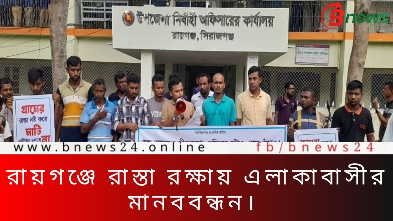 রায়গঞ্জে রাস্তা রক্ষায় এলাকাবাসীর মানববন্ধন।