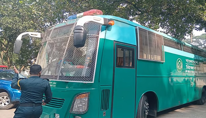 বাংলাদেশ জেলের সবুজ রঙের এই প্রিজন ভ্যানে করে সেনা কর্মকর্তাদের আন্তর্জাতিক অপরাধ ট্রাইব্যুনালে আনা হয়। গুমের ঘটনায় করা মানবতাবিরোধী অপরাধের একটি মামলার আসামি ১০ সেনা কর্মকর্তাকে আন্তর্জাতিক অপরাধ ট্রাইব্যুনালে আনা হয়েছে।