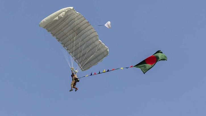 বাংলাদেশ সশস্ত্র বাহিনীর সাহসী ও দক্ষ স্কাইডাইভারদের অংশগ্রহণে, যাদের মধ্যে বাংলাদেশ বিনিয়োগ উন্নয়ন কর্তৃপক্ষ (বিডা) এবং বাংলাদেশ অর্থনৈতিক অঞ্চল কর্তৃপক্ষের (বেজা) নির্বাহী চেয়ারম্যান আশিক চৌধুরীসহ প্রশিক্ষিত প্যারাট্রুপাররা ছিলেন। এই ব্যতিক্রমী অভিযানে আকাশে ভেসে ওঠে লাল-সবুজের ৫৪টি পতাকা। পুরো উদ্যোগটি পরিকল্পনা ও বাস্তবায়ন করে আর্মড ফোর্সেস ডিভিশন (এএফডি)।