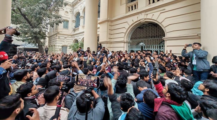 মঙ্গলবার (৩০ ডিসেম্বর) সকাল ৯টায় সিন্ডিকেট মিটিং শেষে জকসু নির্বাচন স্থগিতের ঘোষণা আসলে বিশ্ববিদ্যালয়ের ভাস্কর্য চত্বর থেকে বিক্ষোভ মিছিল নিয়ে শিক্ষার্থীরা প্রশাসনিক ভবনের সামনে জড়ো হয়।