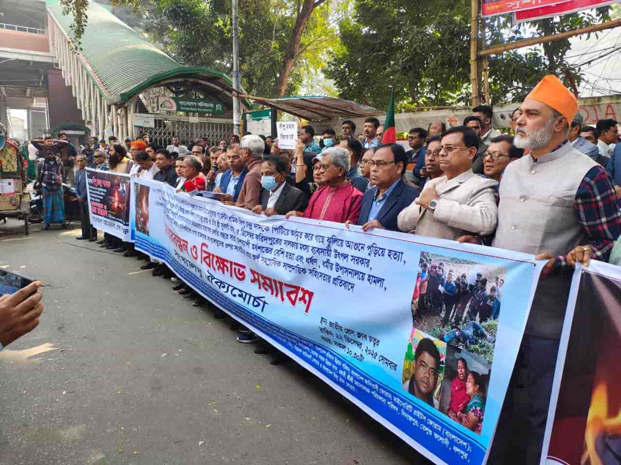 ধর্মীয় সংখ্যালঘু ঐক্যমোর্চার উদ্যোগে ২২ ডিসেম্বর জাতীয় প্রেসক্লাবের সামনে এ কর্মসূচি পালন করে। এতে বিভিন্ন সংখ্যালঘু সংগঠনের নেতাকর্মীদের পাশাপাশি বাংলাদেশ জাতীয় হিন্দু মহাজোটের নেতারাও অংশ নেন।