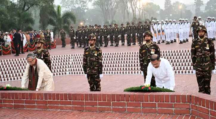 আজ বৃহস্পতিবার ভোরে সাভারে জাতীয় স্মৃতিসৌধে পুষ্পস্তবক অর্পণ করে রাষ্ট্রপতি ও প্রধানমন্ত্রী জাতির শ্রেষ্ঠ সন্তান বীর শহীদদের প্রতি শ্রদ্ধা জানান।