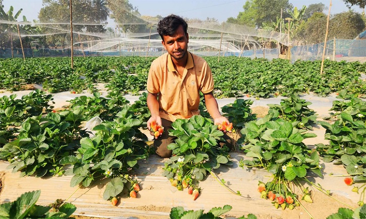 টাঙ্গাইলের ঘাটাইল উপজেলার শোলাকুড় গ্রামে স্ট্রবেরি চাষ করে এলাকায় আলোচনার জন্ম দিয়েছেন অনার্স পড়ুয়া শিক্ষার্থী আব্দুল্লাহ আল মামুন। বিদেশি এই ফলের বাণিজ্যিক চাষে সফল হয়ে চলতি মৌসুমে খরচ বাদে প্রায় ১০ লাখ টাকা লাভের আশা করছেন তিনি। তার এ উদ্যোগে অনুপ্রাণিত হয়ে স্থানীয় যুবকদের মধ্যেও স্ট্রবেরি চাষে আগ্রহ বাড়ছে।
