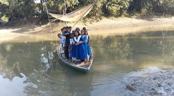 উল্লাপাড়ায় সেতুর অভাবে দুর্ভোগে ২০ গ্রামের মানুষ,দড়ি টেনে নদী পারাপার